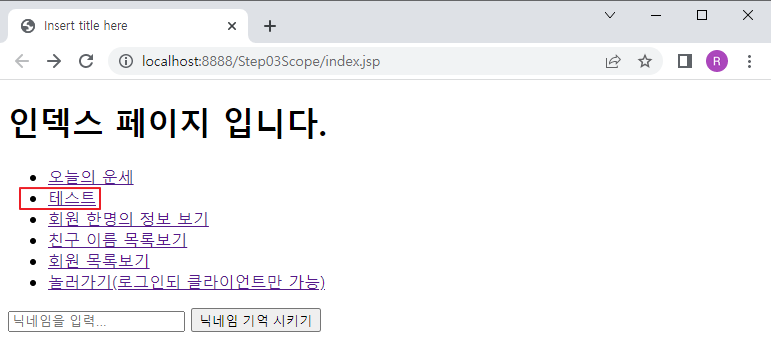 servlet에서 전달한 "동쪽으로 가면 귀인을 만나요!" 값이 jsp에서 받아서 정상적으로 출력되는것을 볼 수 있다.