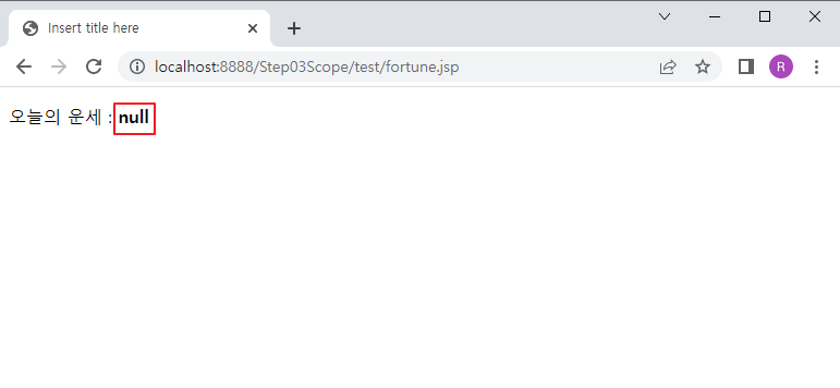 servlet에서 값을 전달해주지 않았기 때문에 null 으로 나오는 것을 볼 수 있다.