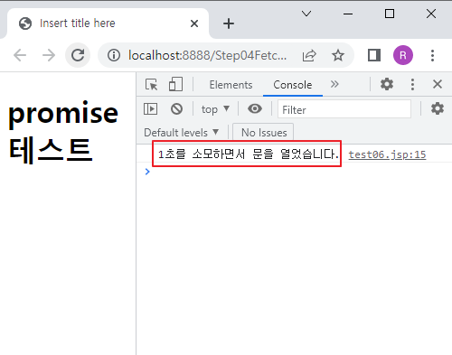 이번엔 .then() 에 적혀있는 console.log 내용인 "then 안에 있는 함수가 호출 되었습니다." 가 출력된다.