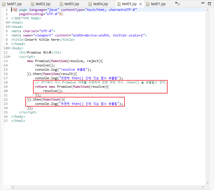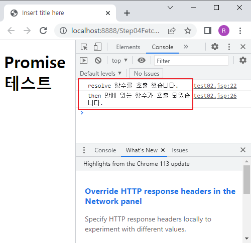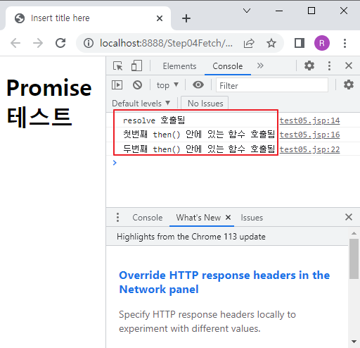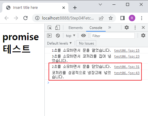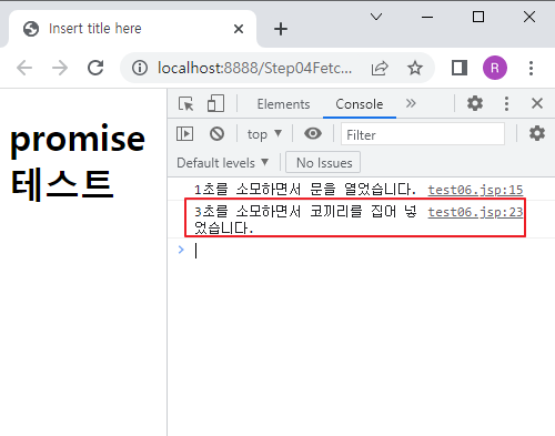 첫번째 .then 두번째 .then 안에 console.log 내용이 둘다 출력된 것을 볼 수 있다.