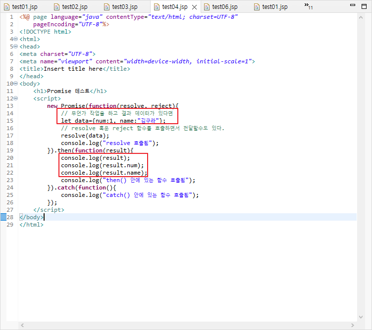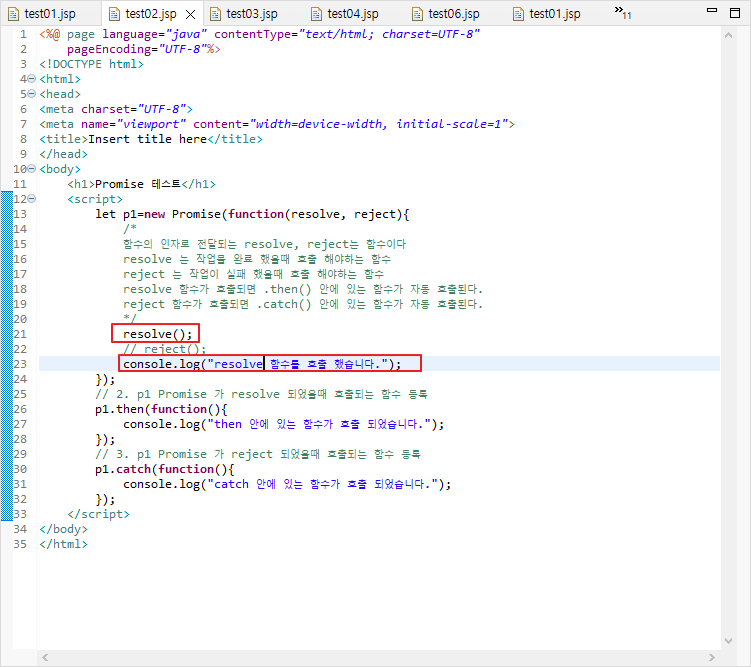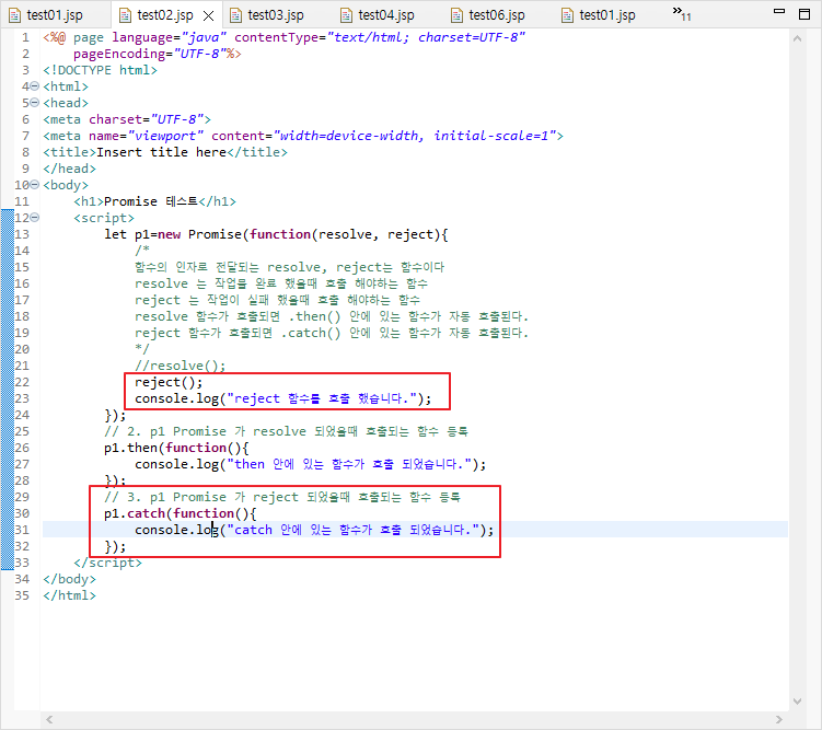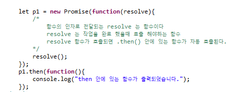 Promise 메소드중 reject(); 는 작업이 실패했을때 호출 해야하는 함수이다