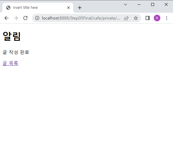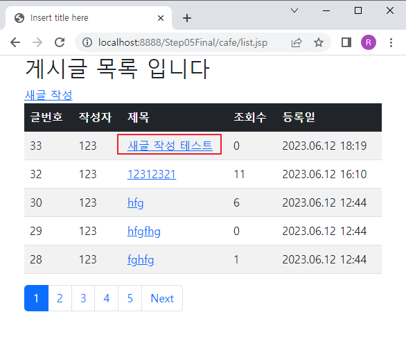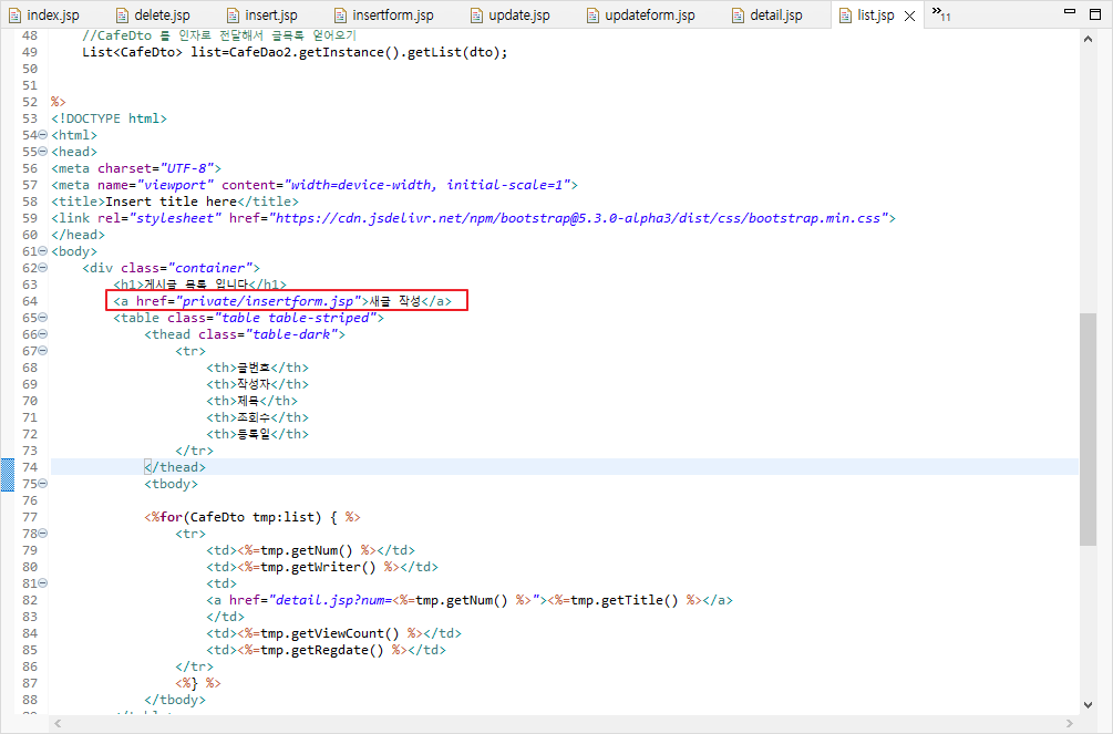 list.jsp 페이지에서 해당 링크를 클릭하게 되면 insertform.jsp 페이지로 이동하게 된다.
