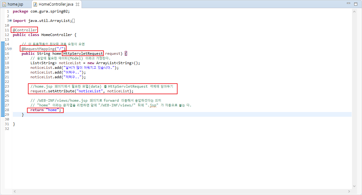 어느 경로에서 요청이 왔을때 응답을 할지 선언해줘야 한다.