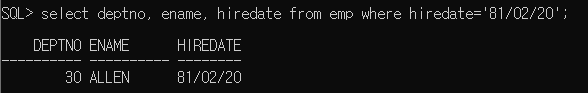 - select deptno, ename, hiredate from emp where hiredate='81/02/20';