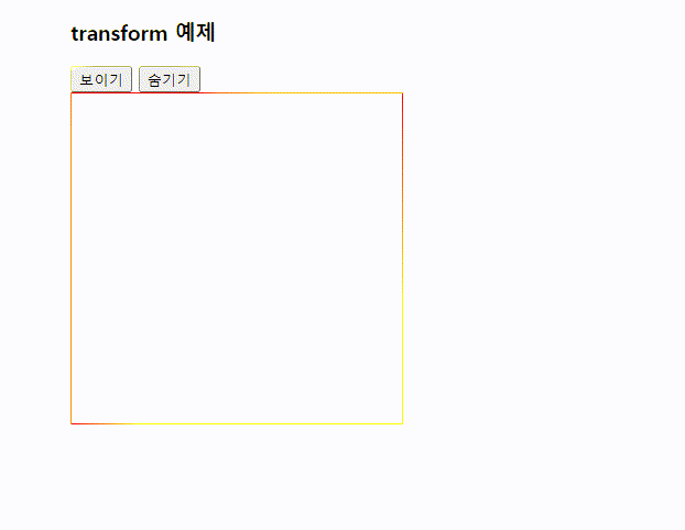 숨기기 버튼을 누르면 translateX 의 좌표가 -300px 으로 이동하여 숨기는 효과를 낸다.