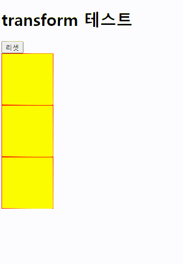 3개의 div 모두 translate 효과를 갖고 리셋버튼을 클릭하면 3개의 div 모두 원래 상태로 초기화된다.