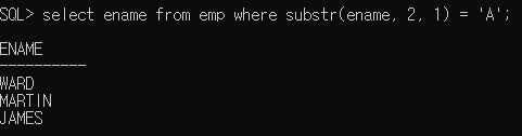 - select ename from emp where substr(ename, 2, 1) = 'A';