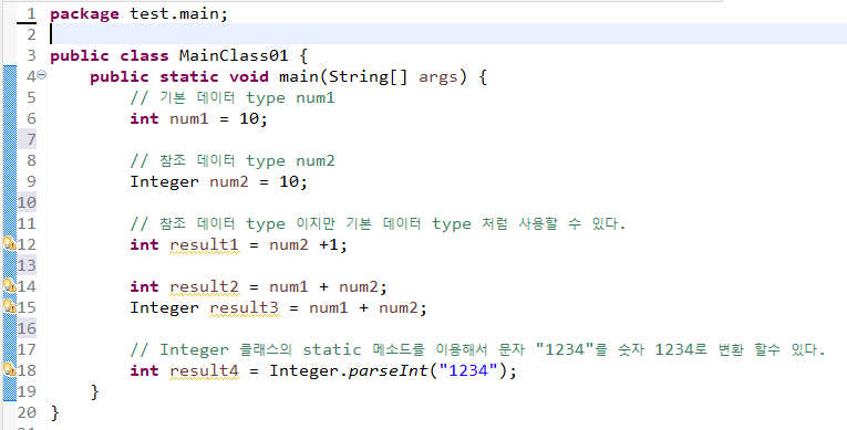 - 기본데이터 type 을 객체에 포장(boxing) 하는 형태이다.