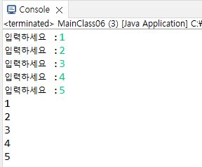 저장된 문자열을 순서대로 콘솔창에 출력시킨다.