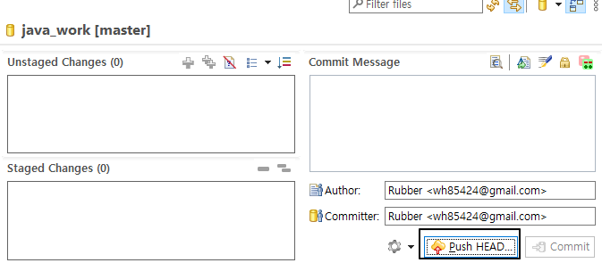커밋을 완료 한 후에 Push HEAD 를 누른다.