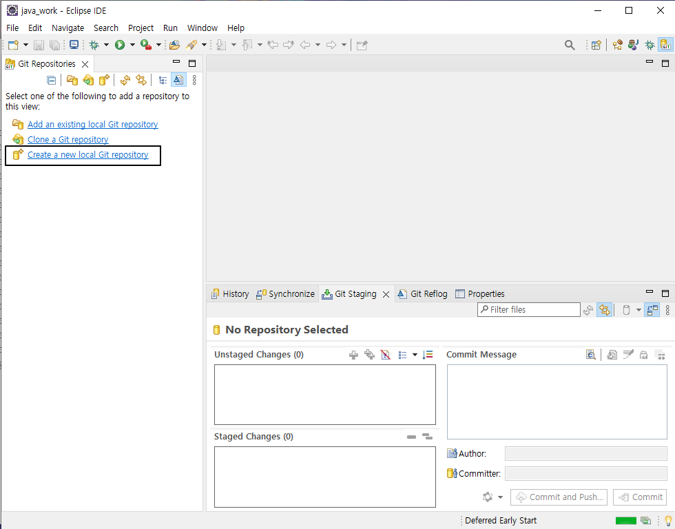 Create a new local Git repository 클릭
