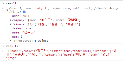 object 를 이용해서 JSON 형식의 문자열으로도 만들수 있다.