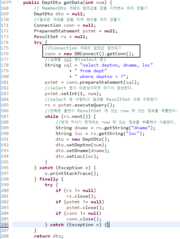 Connection 객체의 참조값을 얻어와서 DB 접속을 완료.