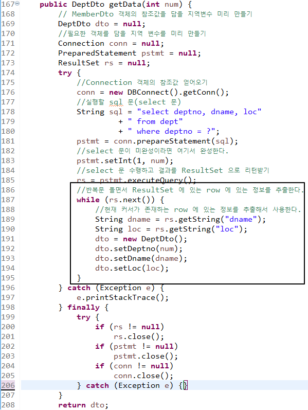 반복문을 돌면서 ResultSet에 있는 row 에 있는 정보를 추출한다.