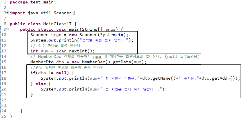 Scanner 클래스를 활용하여 입력한 num에 맞는 회원정보를 열어오는 기능을 만들었다.