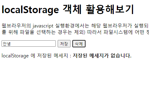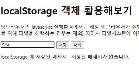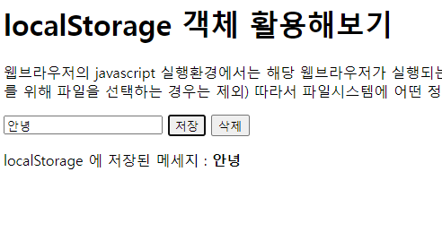 localStorage 에 저장된 메세지 : <strong id="result"></strong>