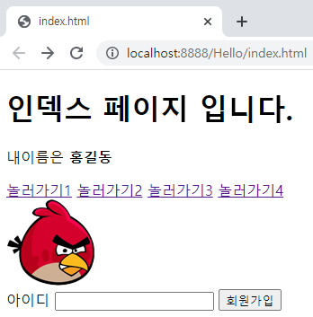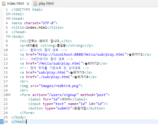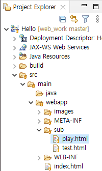 다음은 Tomcat 에서 구동한 html 파일이 play.html에 각각 다른 경로로 진입 할 수 있다.