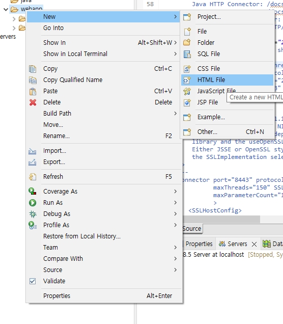 webapp 오른쪽 클릭 > New > HTML File 클릭