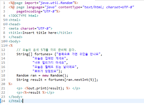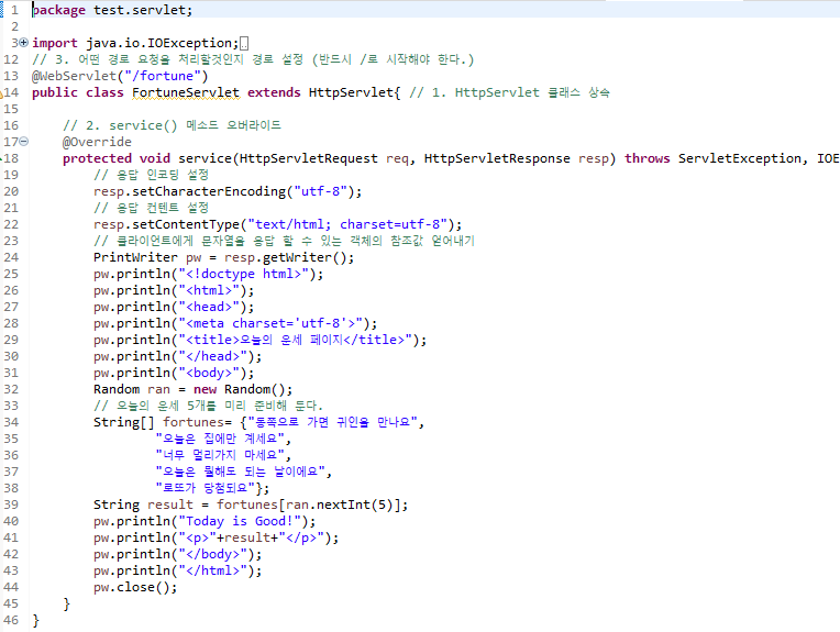 위의 코드를 servlet 으로 표현한 코드이다.