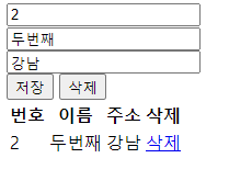 값을 입력하고 저장 버튼을 누르면 해당 값이 table에 추가되어 나타난다