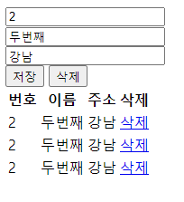 번호, 이름, 주소를 입력하고 저장 버튼을 누르면 localStorage에 저장하고