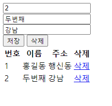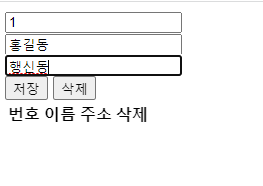 // 번호, 이름, 주소를 입력하고 저장 버튼을 누르면 localStorage에 저장하고
