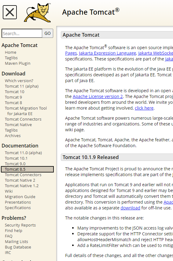 The Apache Tomcat® software is an open source implementation of the Jakarta Servlet, Jakarta Server Pages, Jakarta Expression Language, Jakarta WebSocket, Jakarta Annotations and Jakarta Authentication specifications. These specifications are part of the
