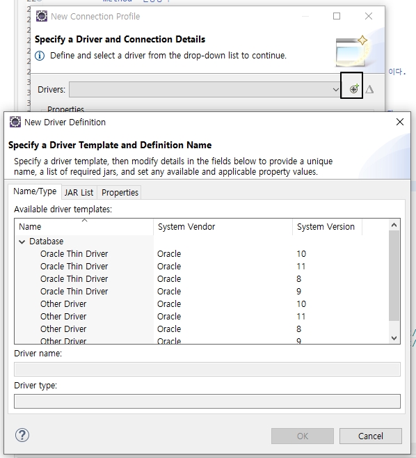 Drivers 우측 + 누른 후 설치한 Oracle 버전 클릭후 OK