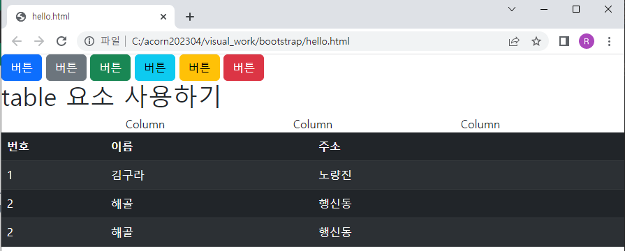 기본적으로 요소 안에 class="" 안에 bootstrap에서 나와있는 값들을 입력하면 해당 css로 적용이 된다.