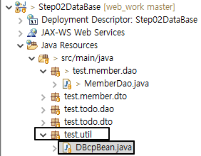 Java Resources 폴더 > src/main/java 폴더에서 test.util 패키지를 생성하였고