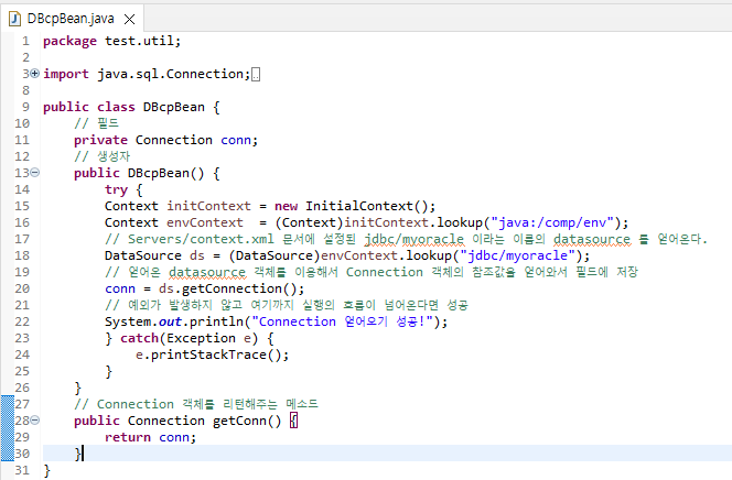 그 안에 DBcpBean.class 파일을 생성하였다.